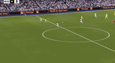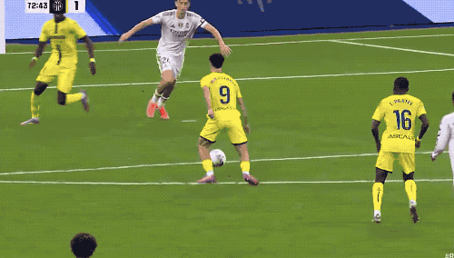第40分钟,皇马险些丢球,比利亚雷亚尔的长传打穿皇马防线,奥卢瓦塞伊单刀面对库尔图瓦明显脚软,错失良机。