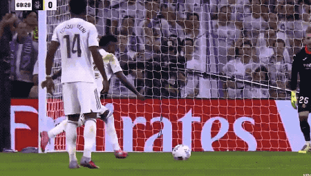 20分钟后,极为活跃的维尼修斯突入禁区,和马林对抗后倒地,裁判判罚点球。维尼修斯希望主罚,姆巴佩让贤,成全了维尼修斯的梅开二度。