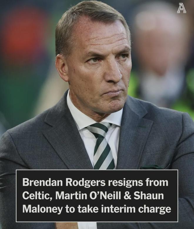 “凯尔特人足球俱乐部确认,教练布伦丹-罗杰斯于今天递交了辞呈。俱乐部已接受了他的辞职,布伦丹将立即离任。”