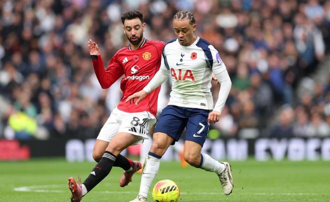 上半场,姆伯莫头球破门帮助曼联1-0领先,热刺直到第84分钟依靠特尔的进球,将比分扳为1-1平。第91分钟,里沙利松将球蹭进球门,帮助热刺2-1完成反超,随后第96分钟,德利赫特头球破门,帮助曼联2-2完成绝平,终结各项赛事对阵热刺四连败。